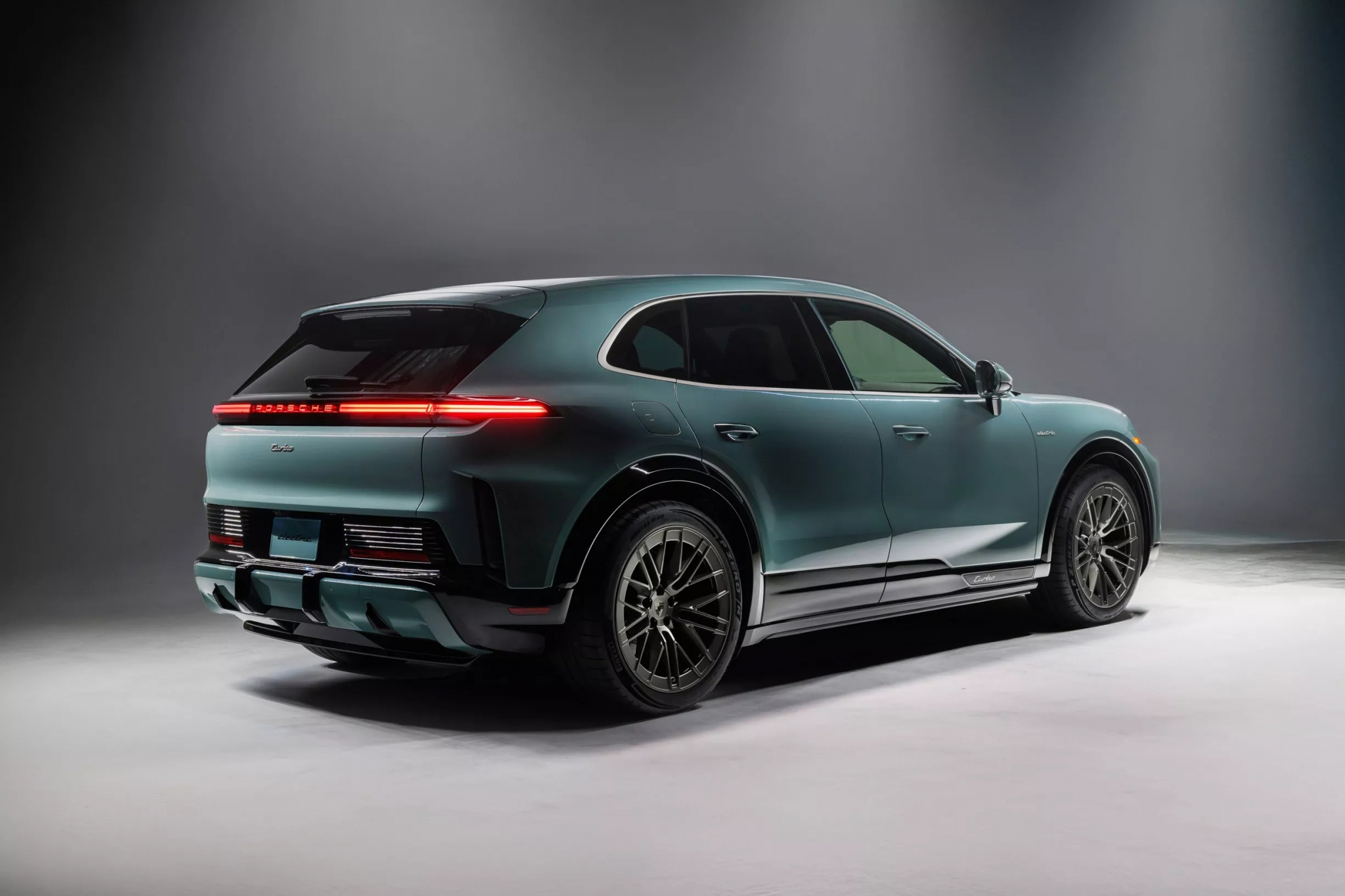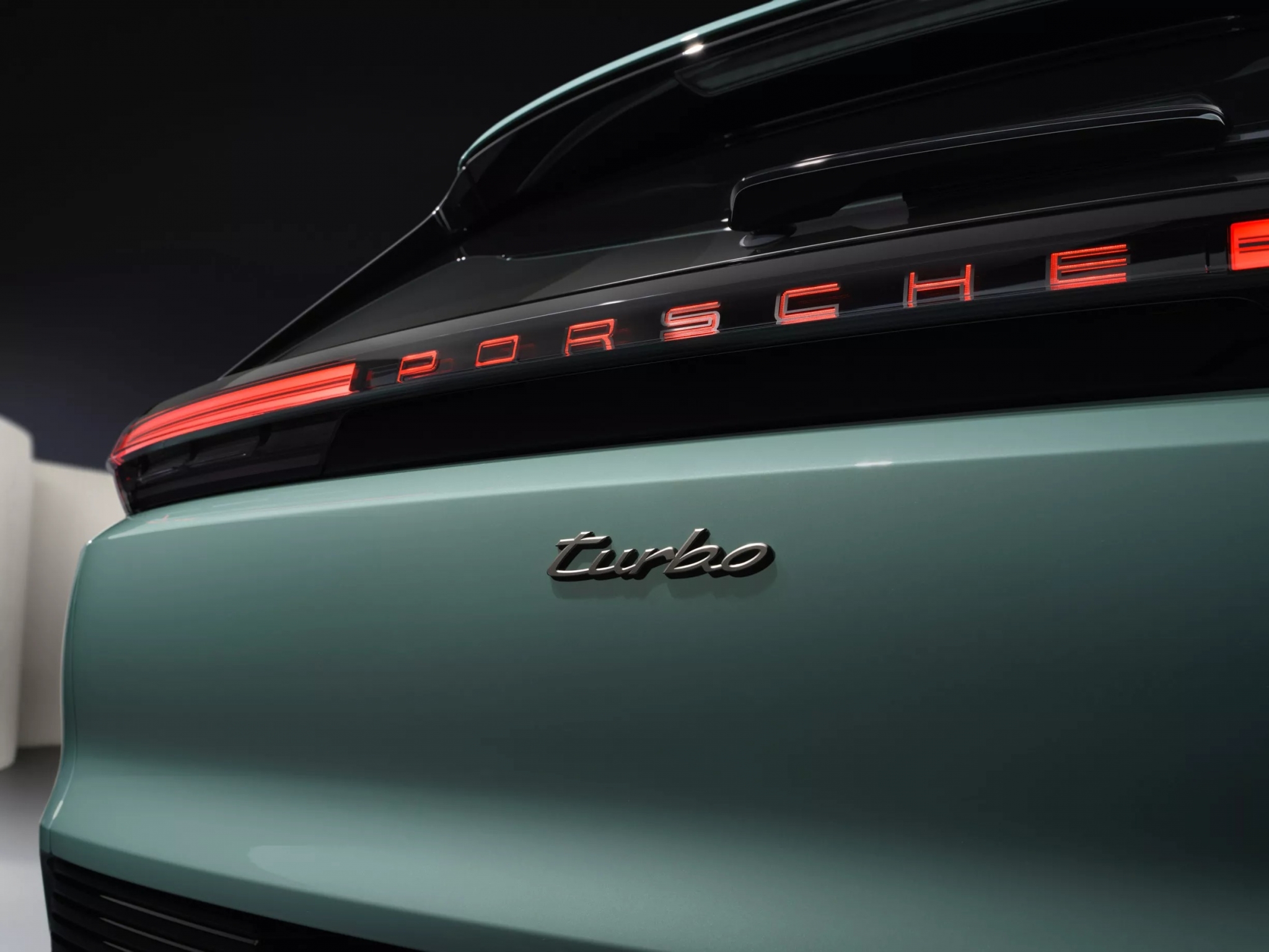 Сзади появились 3D-фонари и подсвеченная надпись Porsche. Turbo Electric выделяется контрастными акцентами цвета Turbonite — звучит как имя суперзлодея Marvel.