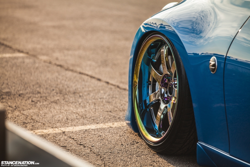 Сразу, как началась постройка, Патрик уже знал какие именно диски он хочет видеть на своём автомобиле. Поскольку он хотел, чтобы его проект отличался от других, выбор Патрика пал на Gram Lights 57s Pro. Переливающийся неохром на дисках отлично сочетается с синим цветом кузова. Надеюсь, по фотографиям вы уже заметили почему мы с Патриком полюбили эти диски.