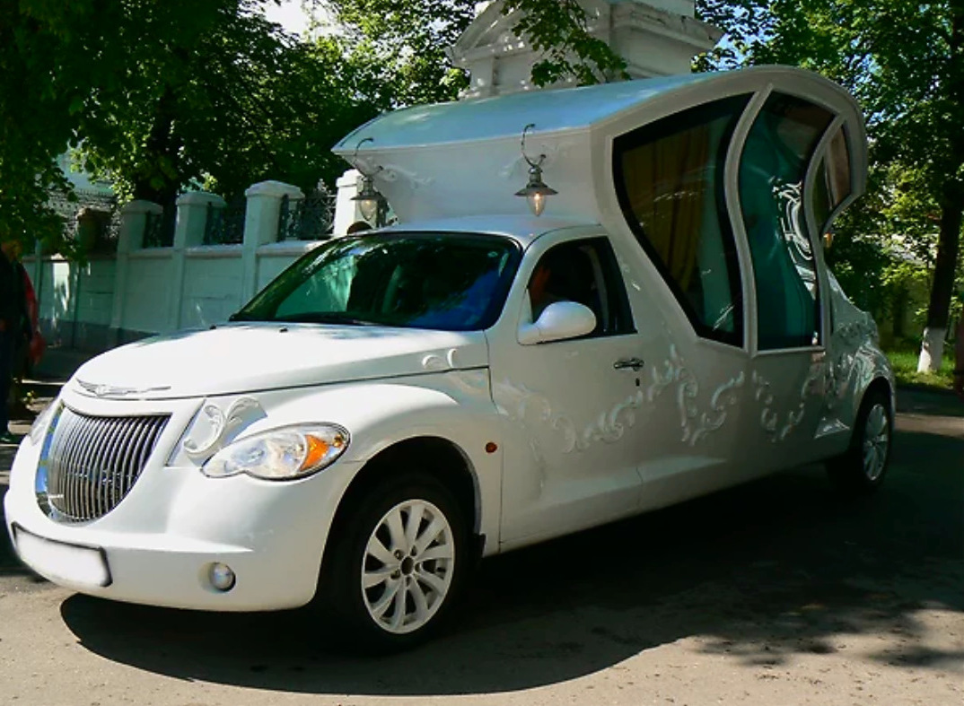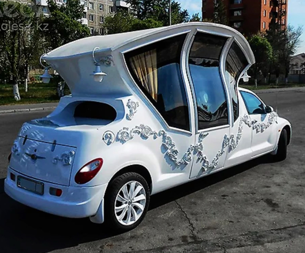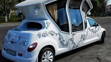 Едем дальше. Видели когда-нибудь лимузин-ландо? Задняя часть крыши у него отсутствует. Как раз над диваном, где обычно сидят молодожены. Вроде бы неплохая идея, но как быть с прической невесты, которую растреплет ветром?