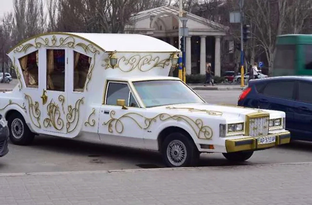 Старенький Lincoln тоже примерил на себя образ кареты. На этот раз с аляпистыми ажурными узорами, покрашенными «под золото».