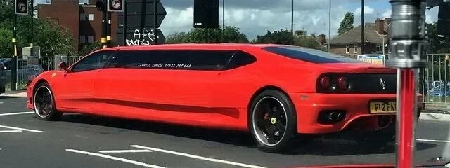 Далее вы увидите еще пару лимузинов, созданных на базе суперкара. На этот раз в качестве основы взяли Ferrari 360 Modena. К счастью, их удлинили всего не несколько метров, но этого оказалось достаточно, чтобы полностью "уничтожить" элегантную внешность итальянского суперкара.