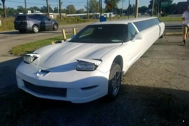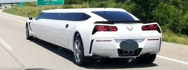 В америке растягивают всё. Буквально. Даже купе Chevrolet Corvette, который вроде бы и не должен был стать лимузином. Но кому-то захотелось посмотреть, как будет выглядеть его приземистый силуэт в 20-метровом варианте. На первой фотографии: лимузин на базе Corvette C5...