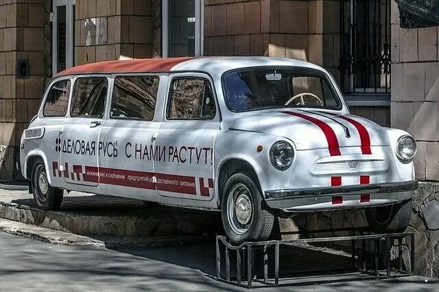 Конечно же мы не можем не рассказать вам про лимузины на базе ЗАЗ-965А "Запорожец". Периодически владельцам этих микроавтомобилей приходит в голову идея переоборудования их во что-то более длинное. Конечно, слабенького двигателя не хватит, чтобы перевозить людей, зато такой автомобиль может стать отличным рекламным щитом.