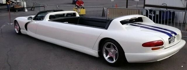 Если и есть в этом мире самый неподходящий автомобиль для создания лимузина, то это Dodge Viper. Хотя бы потому, что у него открытый двухместный кузов. Но голь на выдумку хитра. Посмотрите, как искусно растянули этот автомобиль? Вот только где у него задние двери?