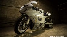 Видели ли вы когда-нибудь мотоцикл, половина которого окрашена в один цвет, а другая половина – в другой? Мастера из американской компании Bowtie Connection создали этот удивительный кастом на базе 2006 Suzuki GSX-R1000 и окрасили правую половину в карамельно-синий, а левую – в жемчужно белый цвет.