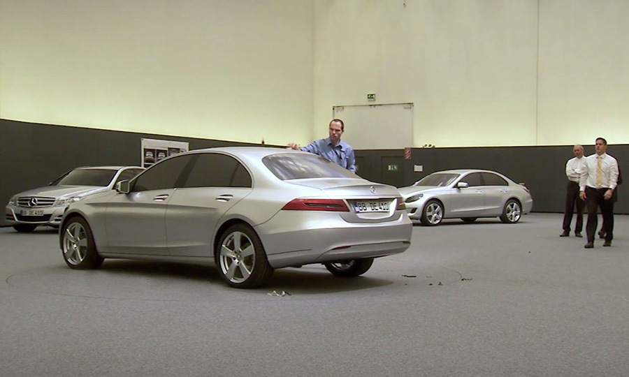 Один из вариантов дизайн-макетов в натуральную величину будущего Mercedes-Benz C-класса пятого поколения. Понятно, почему руководство не приняло подобное оформление задней части, ведь фары слишком сильно напоминают автомобили Audi.