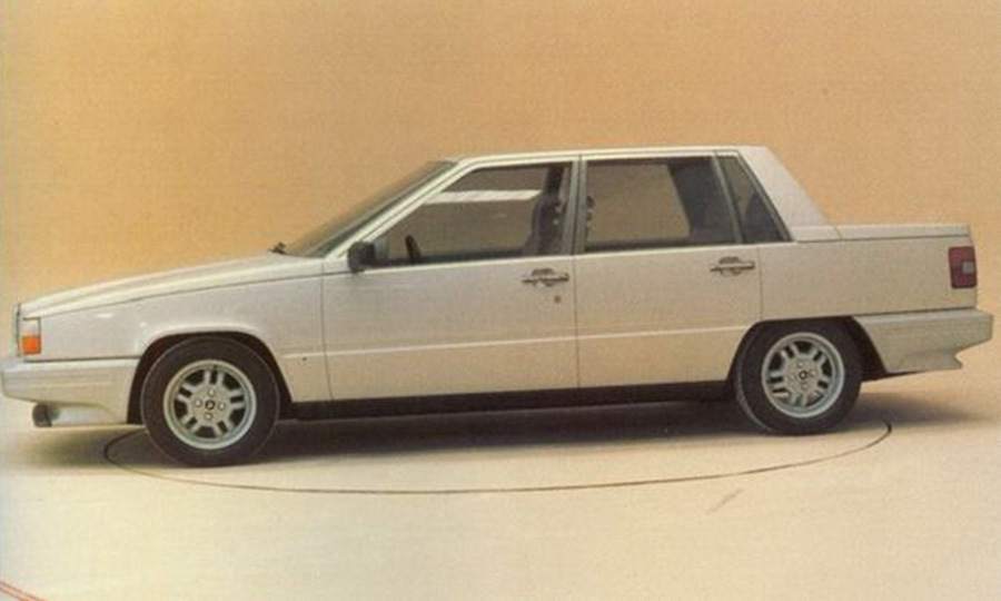 Выпуск среднеразмерного седана Volvo 850 стартовал в 1991 году. Серийный автомобиль получил необычные рубленые формы, которые, как мы видим по фотографии макета, могли быть еще более экстравагантными. В задней части дизайн-макета узнаются черты японских Nissan середины 80-х.