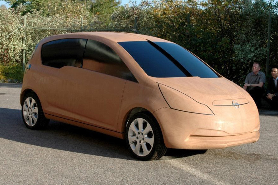 Пластилиновый макет в натуральную величину компактного минивэна Opel Zafira. Несмотря на то, что в деталях он отличается от будущего серийного автомобиля, модель легко узнается из-за характерной формы боковых линий.
