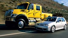 Также существуют и пикапы-гиганты, которые выпускаются ограниченным количеством. Так компания International в 2004 году представила огромный пикап под названием CXT. Высота пикапа около 2, 7 метра, ширина - 2,4 метра, длина - 6,5 метров, масса машины - 6,6 тонны, грузоподъёмность - 5,5 тонн, допустимая масса прицепа - 17,5 тонн. Расход топлива такой машины равен 1 литр на 4 км.