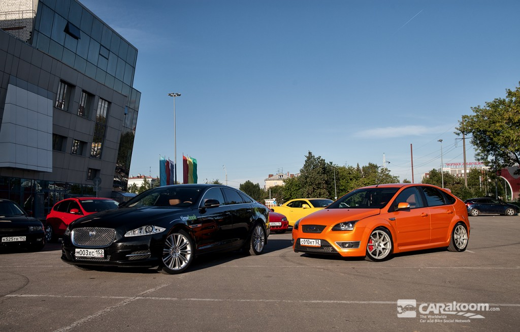 Классная парочка из Jaguar с лого проекта TimeBook и нижегородский оранжевый Ford Focus ST с 3-stage тюнингом.