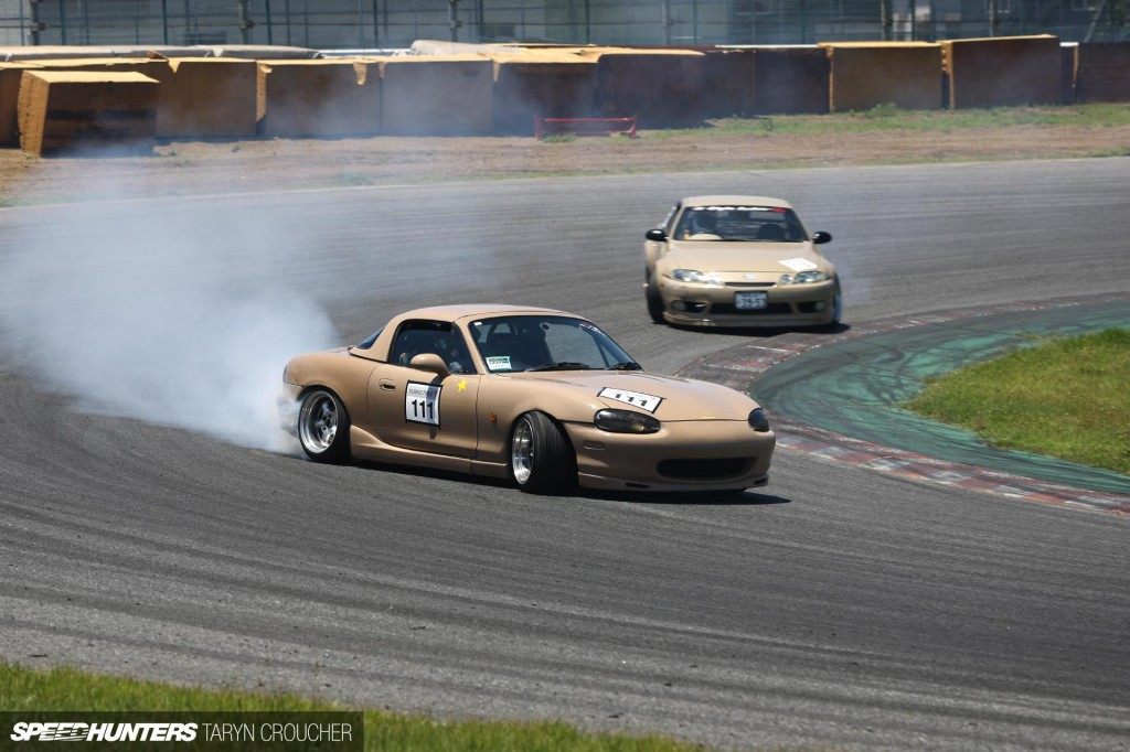 Одной из машин, больше всех жёгшей резину, была эта Mazda MX-5 NB, которая заставляла меня улыбаться ещё больше. Пока я смотрела на едущие боком машины в своём сонном состоянии, я начала видеть сны, не спя вовсе, о том, как я навсегда осталась в Японии, купила JZX100 и стала бойкой девчонкой-дрифтером... Эх... Хотелось бы!