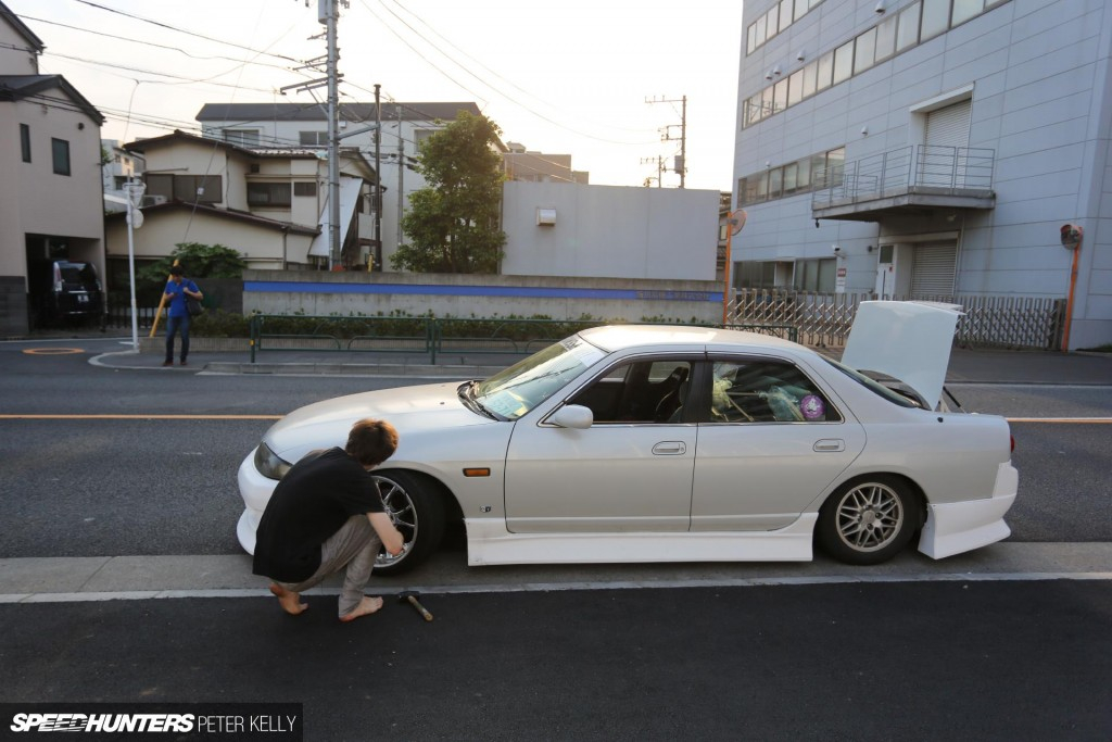 Когда мероприятие кончилось, мы пошли на парковку и заметили ещё один 4-дверный R33 Skyline, припаркованный напротив машины Тоби, а пока мы с деловым видом разглядывали его, к нам подошёл владелец машины с друзьями. Но прежде чем мы узнали это, прошёл, наверное, целый час обсуждения машин, после чего мы начали сравнивать моторные отсеки.