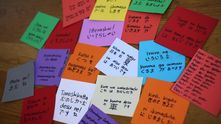 Конечно, не у всех такие друзья есть; лично я не знала оттуда никого ещё пару лет назад. Но это не должно вас расстраивать, и я надеюсь, что эта история даст вам несколько полезных советов. Во-первых, почему бы не подучить японский? Оказалось, что это очень легко, и я выучила основные разговорные фразы, просто слушая подкасты с этого веб-сайта. К сожалению, мой мозг ещё не воспринимает и не запоминает все эти сложные иероглифы кандзи (kanji), но два базовых алфавита, которые называются хирагана (hiragana) и катакана (katakana), я выучила легко. В прошлом году я их запоминала, выписывая на эти цветастые бумажечки во время завтрака каждое утро.