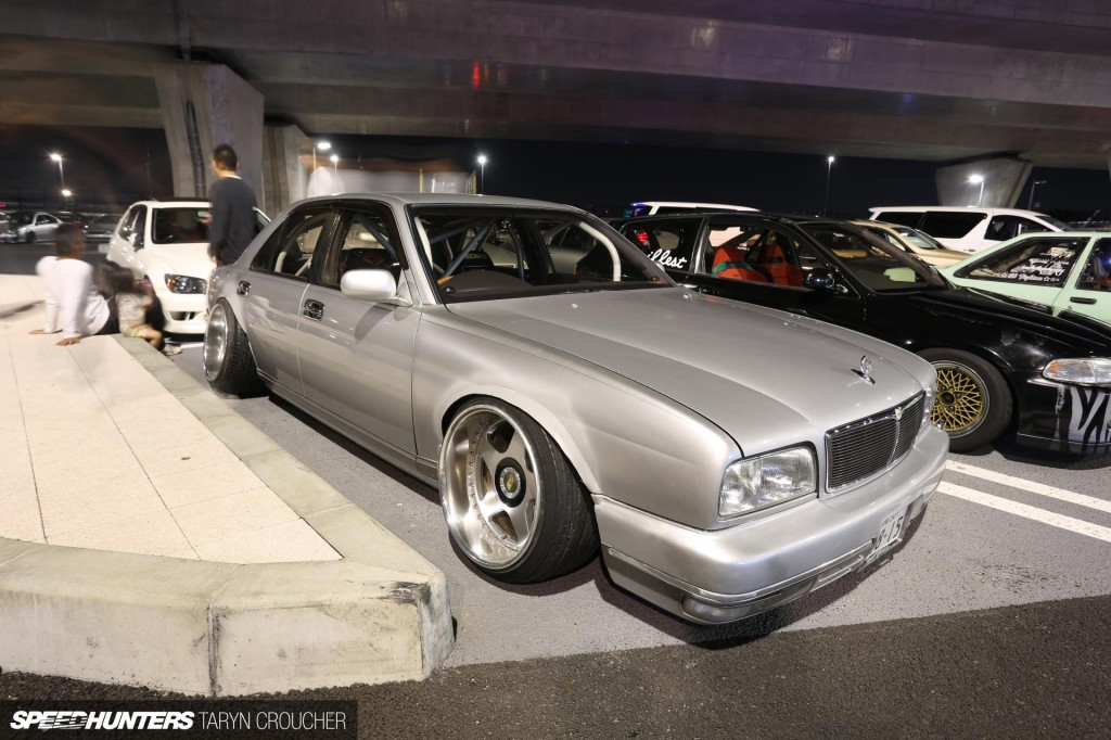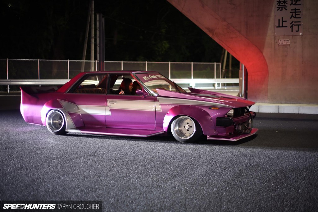 Владелец этого Nissan Skyline C210 использовал более классический подход, занизив машину не сильно и установив диски SSR Longchamp XR4. Интересные ребята в ту ночь засветились: заниженные минивены, кей-кары (kei-cars), уличные машины и дрифткары, но я никак не ожидала увидеть это...