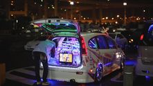 Как только заехали на парковку, так сразу услышали очень знакомый ритм песни "Crazy Frog" (я не шучу!), и чем дальше заезжали - тем громче становилась музыка... и громче... пока не стала совсем громкой. Группа из примерно 10 минивенов устроили своё мини-соревнование на громкость, и каждый выжимал из своей системы максимум. Салон этой светящейся неоновыми огнями Honda Stream был просто невероятен!