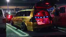 Уровень доработок этой Toyota Vellfire был запредельным, учитывая работы по расширение каждой из четырёх арок для того, чтобы они умещали невероятно широкие диски Work. Зачем делать такое с прекрасным семейным минивеном, скажете вы? Спросите у жены и детей владельца - потому что они тоже были там!