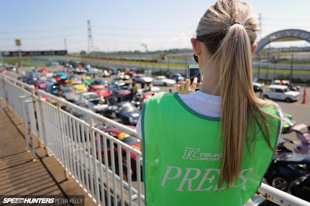 Это была моя первая поездка на Honjo Circuit. Трасса расположена в небольшой долина, а окружена она сочной зеленью, наполненной птичками. Пока я гуляла по питлейну, моё сердце то и дело замирало от вида восхитительных машин, находившихся там.