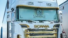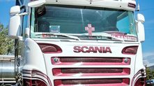Scania R620 предыдущего поколения с максимально высокой крышей. Вы не найдете тут хрома, зато увидите христианский крест за лобовым стеклом. Заставляет задуматься немного...