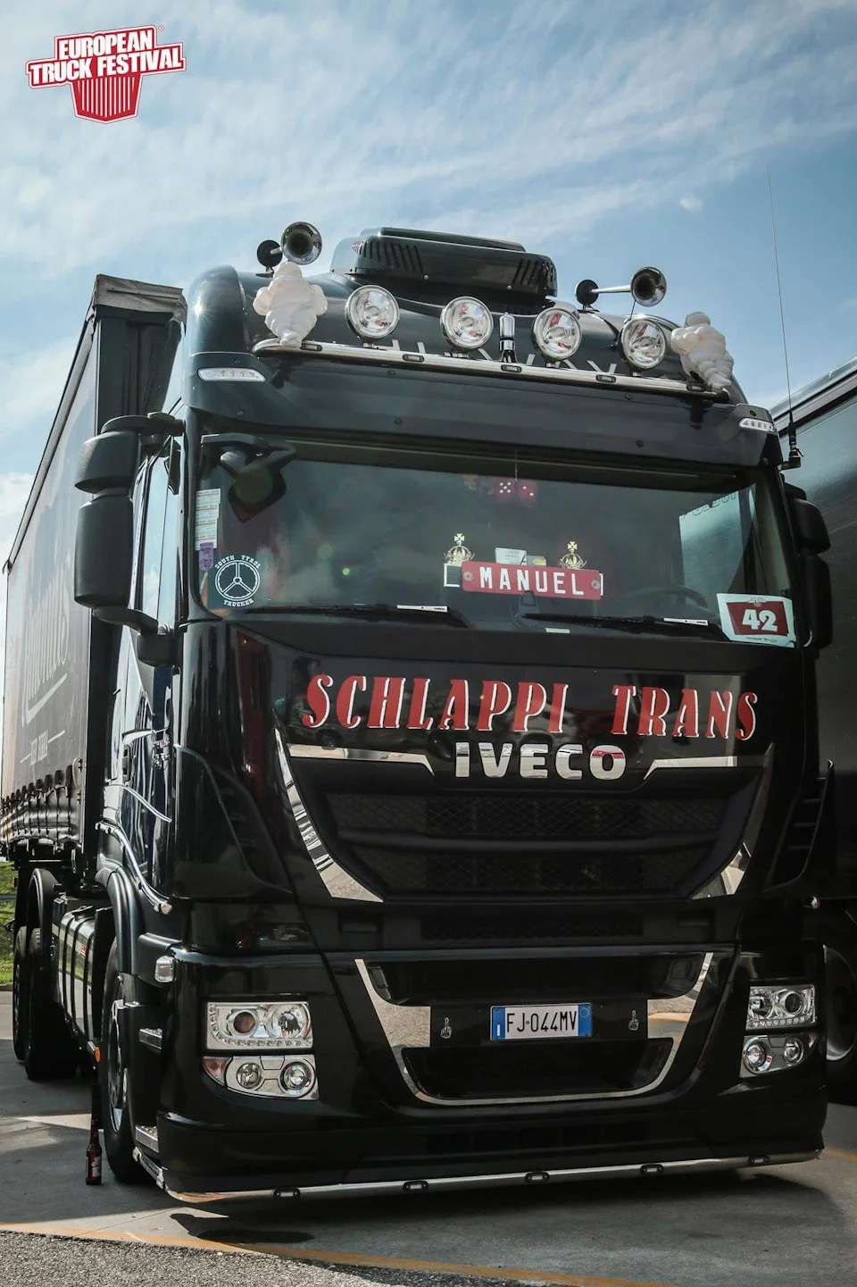 IVECO всегда были рабочими лошадками, но в Италии украшают даже их. Этот Stralis транспортной компании Schlappi Trans получил множество хромированных деталей, "люстру" на крыше и знаменитые человечки Michelin.