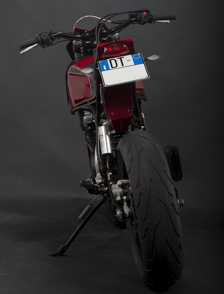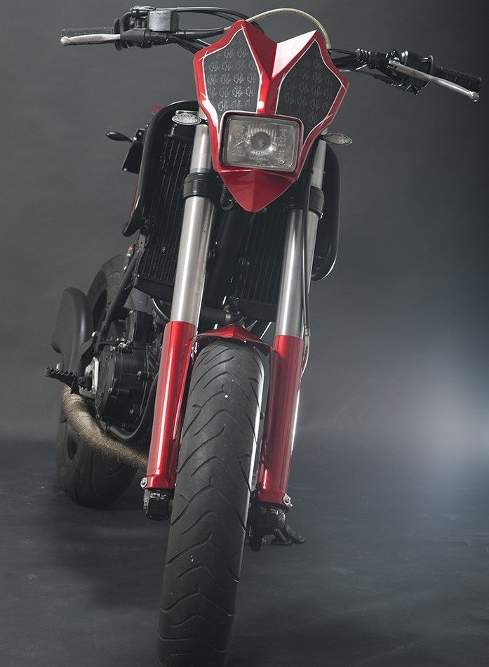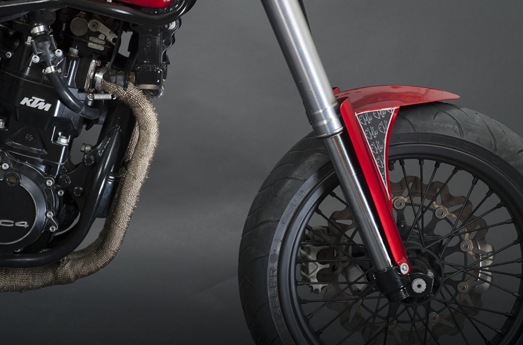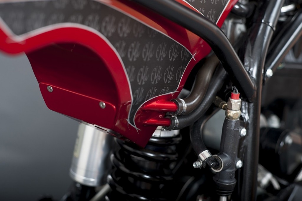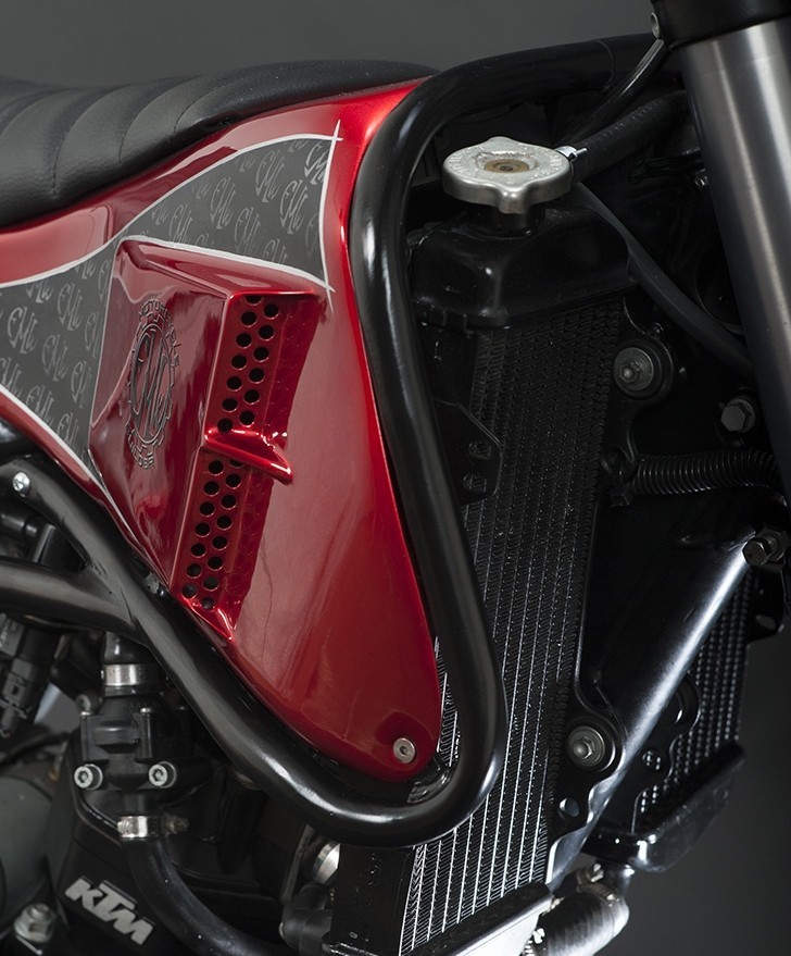 Coito начинал как KTM 640, после чего он сбросил немного веса, благо специалисты из FMW Motorcycles знают в этом толк. Если вы кстати не знали, в название FMW, буква M значит “метал”, что объясняет почему практически все пластиковые детали, были заменены на металлические. Думаю, не стоит лишний раз упоминать, что он был сделан по спец заказу, это и так ясно.