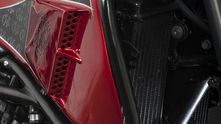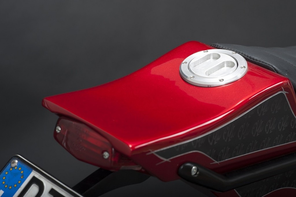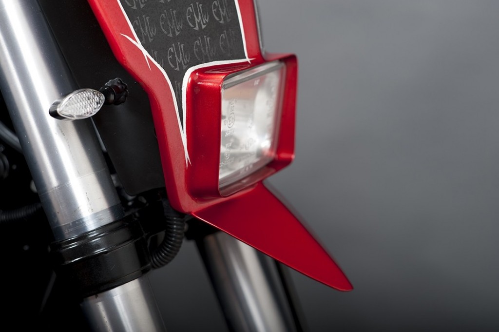 Передняя фара была заменена на квадратную в стили ретро, и от нее теперь отходит небольшой козырек, напоминающий клюв. Это было сделано в большей степени из соображений аэродинамики, но получилось при этом очаровательно. Красный, или даже слегка перламутровый цвет, с гармонично вписанным логотипом FMW, просто кричит от желания покрасоваться на дорогах.