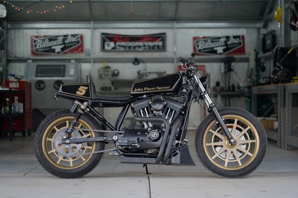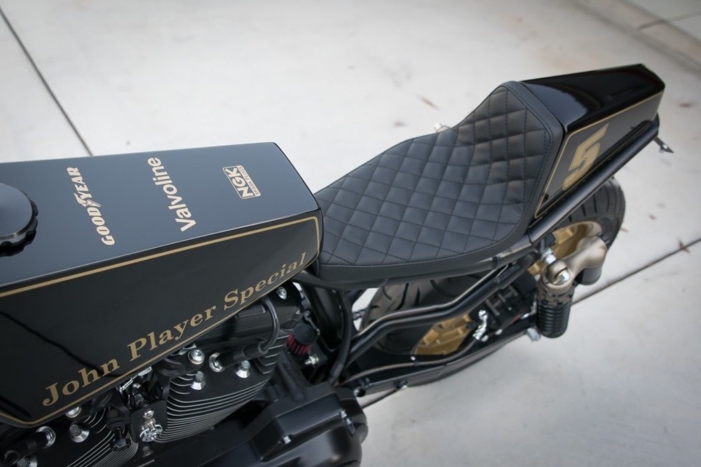 Кастом окрашен в гоночные цвета JPS (John Player Special), в которых Марио Андретти гонялся на Lotus-Ford в чемпионском сезоне Формулы 1 1978 года. Конечно же, в DP Customs переделали раму и изготовили новый подрамник. Обвес создан вручную в единственном экземпляре вместе с новым топливным баком и хвостовым оперением.