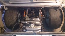 Шатуны и клапаны стоковые, поршни 2112, коленвал 75,6 мм, форсунки 870сс, доработанная головка блока цилиндров, распредвалы ОКБ, двигатель фаза 290, степень сжатия 7,5, две турбины китайские, задний мост ВАЗ-2106, амортизаторы 2108, рулевая рейка Ока, самодельная рама.