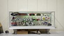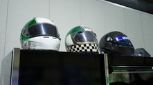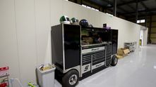 Чёрный шкаф Snap-On также используется как подиум для коллекции шлемов Дайго.
