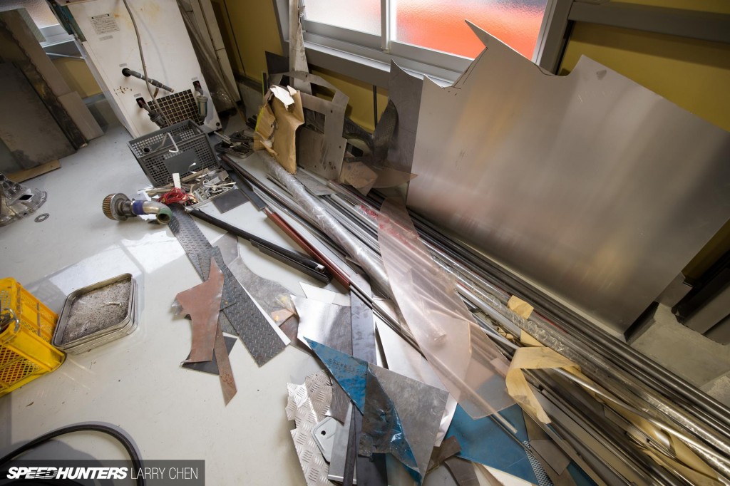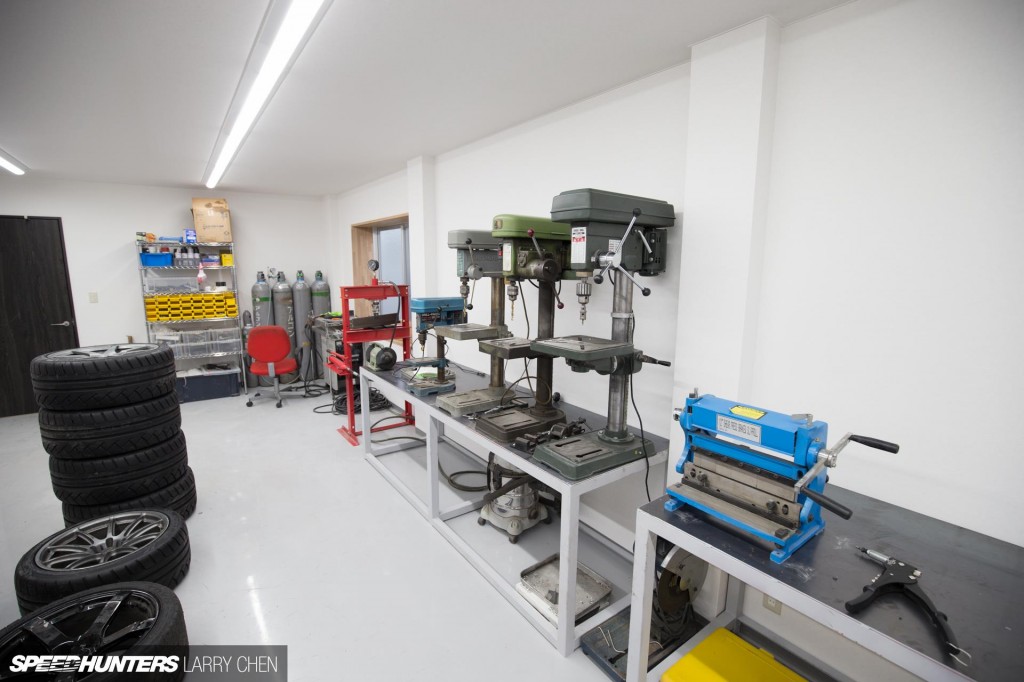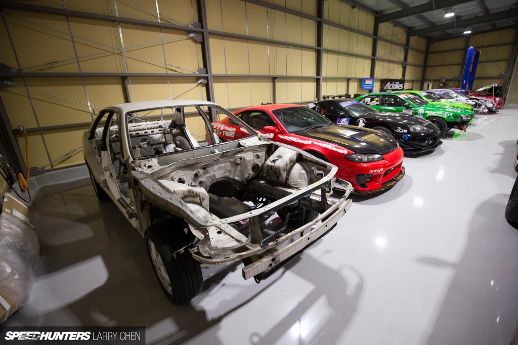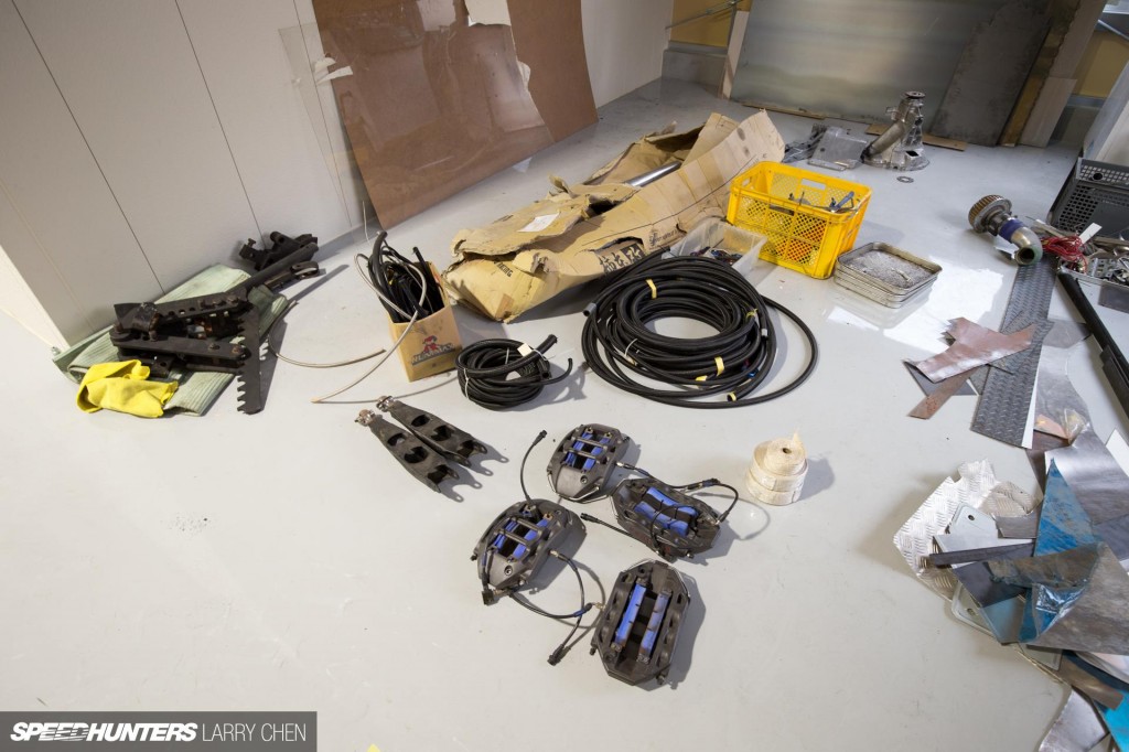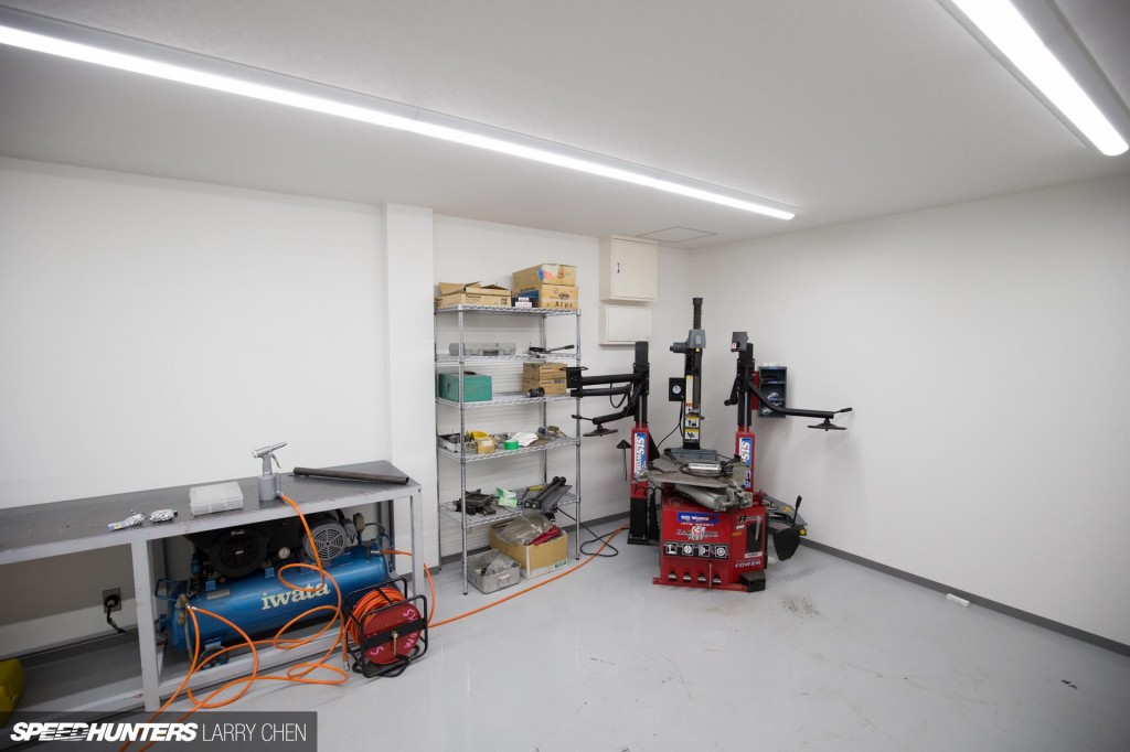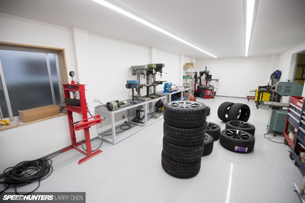 Одна из частей гаража в данный момент используется в качестве хранилища для деталей и материалов, которые будут использованы при сборке GT-R для Formula D.