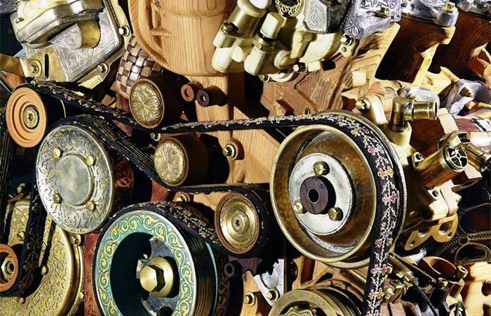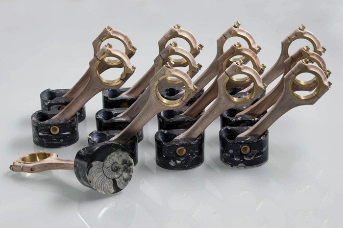 На создание такого двигателя мастерам потребовалось 9 месяцев. Из литой меди при помощи ручной ковки были выполнены некоторые части двигателя и скрепляющие их болты. Также для создания копии двигателя Mercedes V12 умельцы использовали олово, полудрагоценные камни, никель, природные красители, глину, натуральную ткань, серебро, кость, бараний рог и конечно же различные породы деревьев