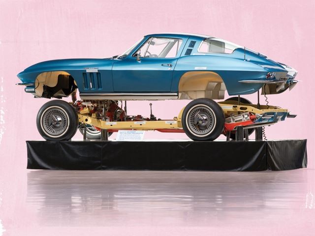 В целом автомобиль не отличается от любого другого серийного 1965 Chevrolet Corvette Stingray, у него под капотом также установлен 327-дюймовый V8 и 4х скоростная трансмиссия. Посмотрите на фотографии и вы сразу поймете, что особенного в этом Corvette. Данный экземпляр Chevrolet Corvette Stingray C2 готовился для выставок и автомобильных шоу, поэтому на него была установлена специальная гидравлическая система, поднимающая кузов.