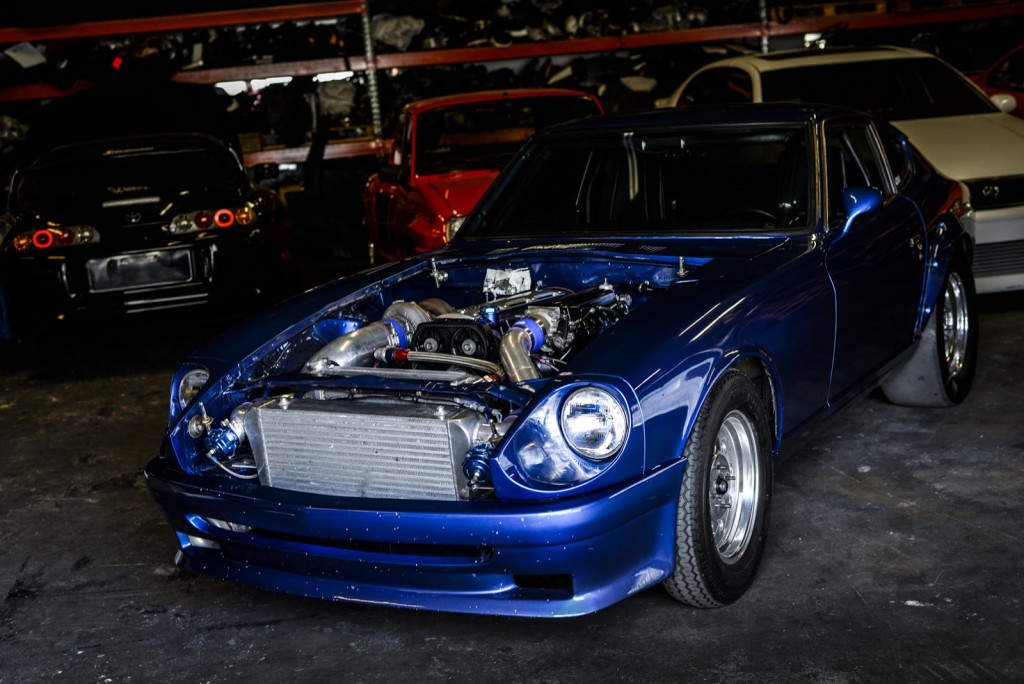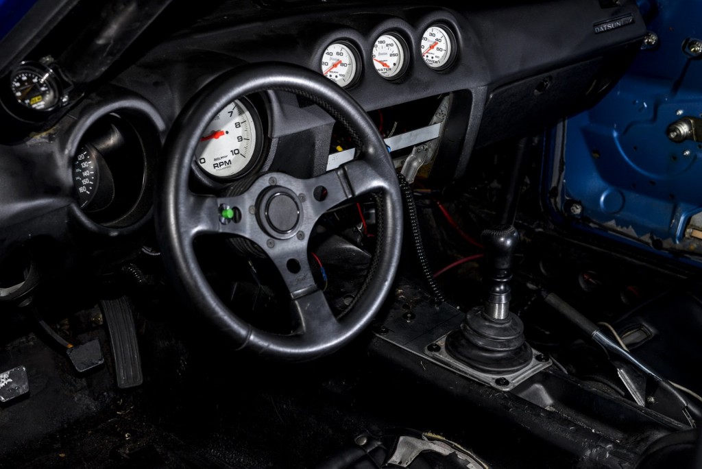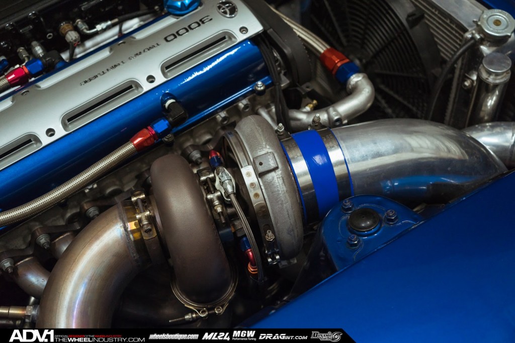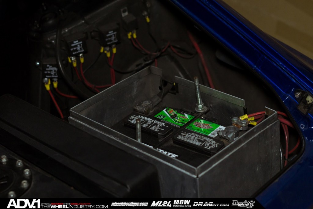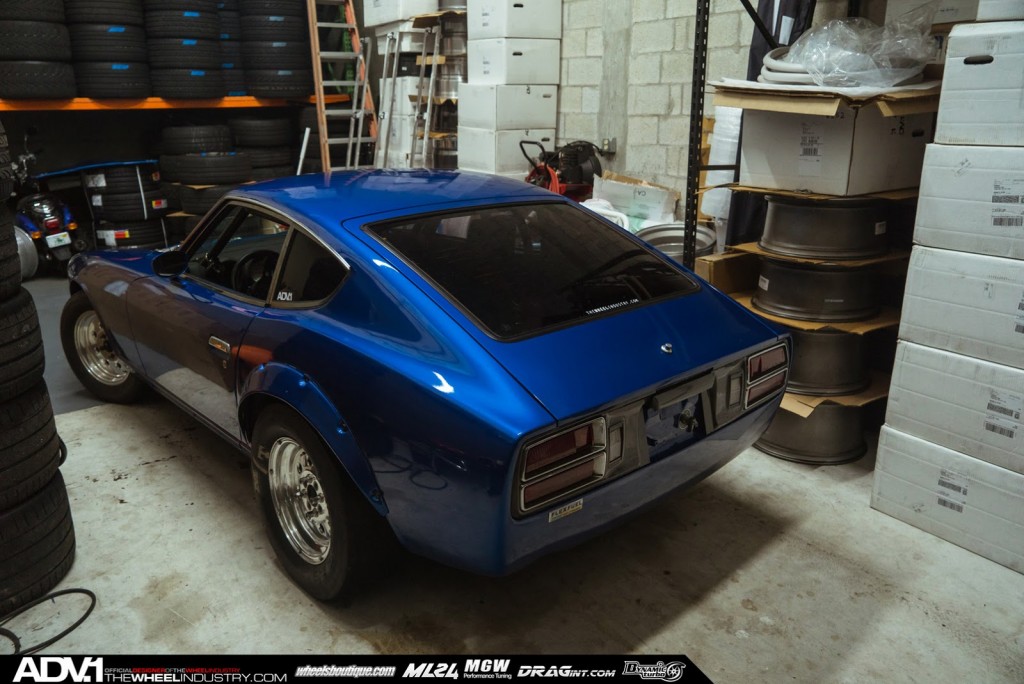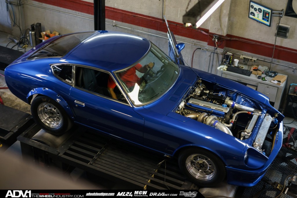 Также на синий Datsun были установлены турбина Garrett Gt42gtx, каркас безопасности, 6-ступенчатая коробка передач Getrag с двухдисковым сцеплением, комплект амортизаторов KYB с пружинами Eibach, и конечно же колесные диски ADV.1 Wheels.
