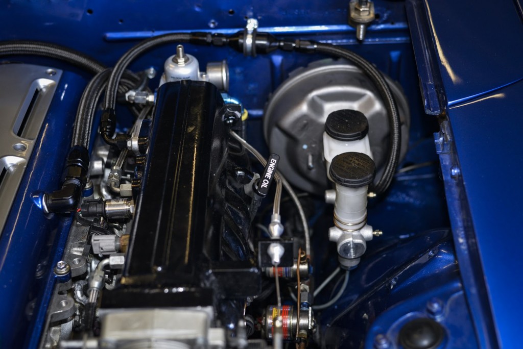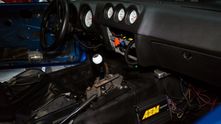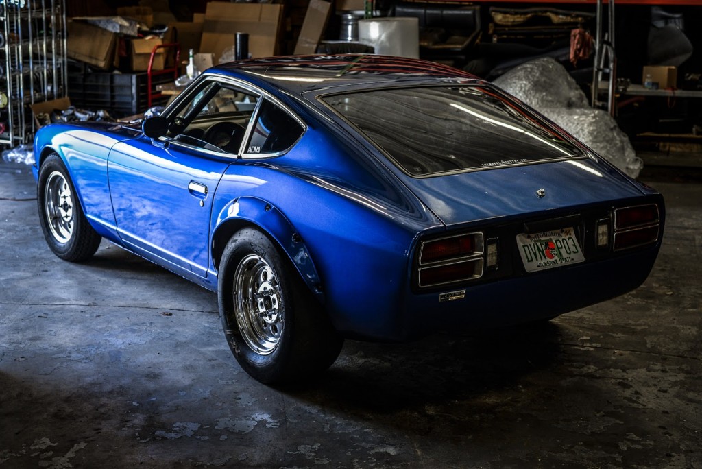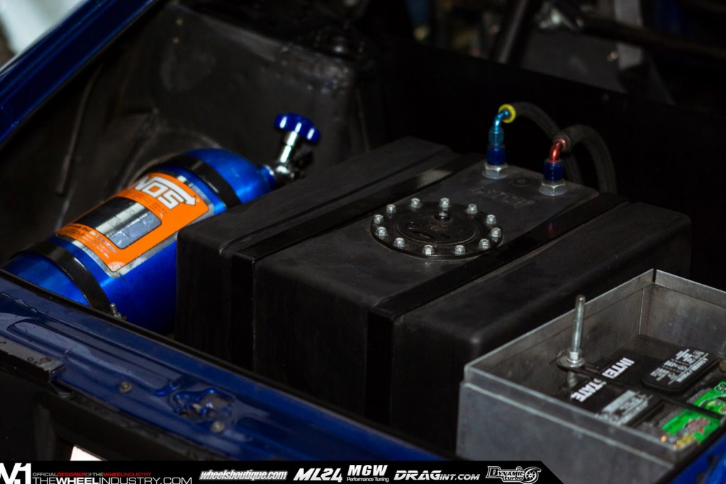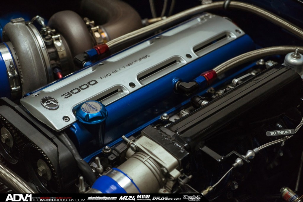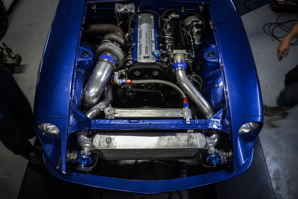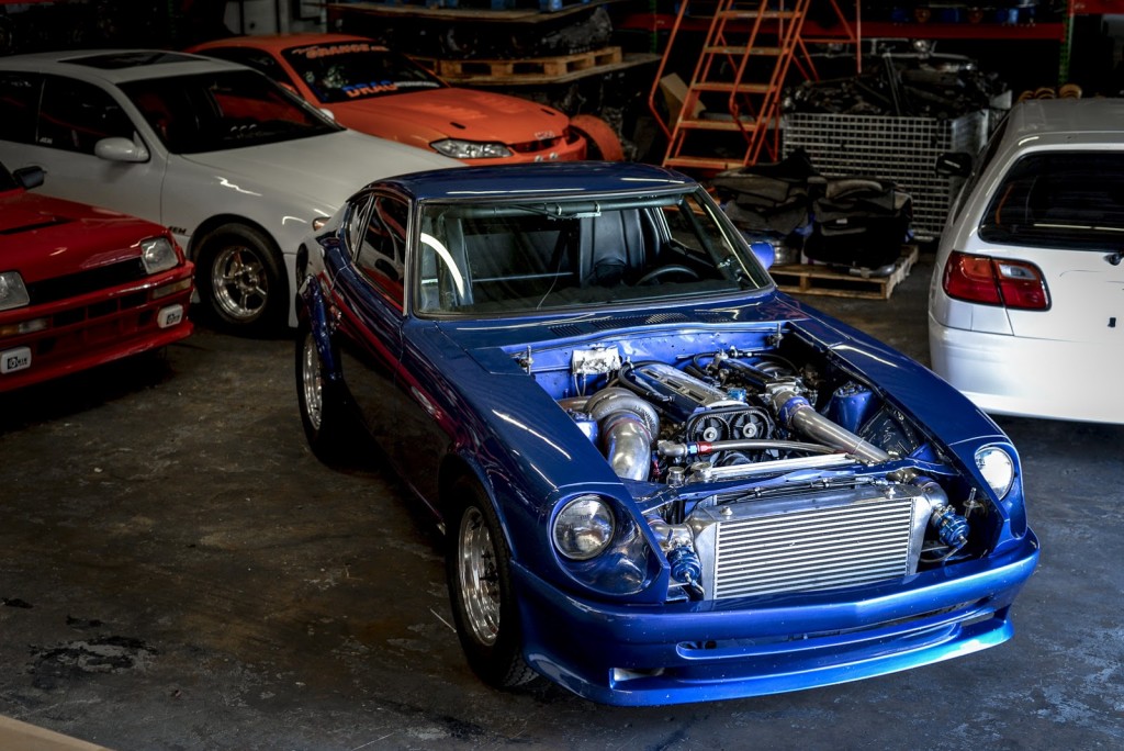 Также на синий Datsun были установлены турбина Garrett Gt42gtx, каркас безопасности, 6-ступенчатая коробка передач Getrag с двухдисковым сцеплением, комплект амортизаторов KYB с пружинами Eibach, и конечно же колесные диски ADV.1 Wheels.