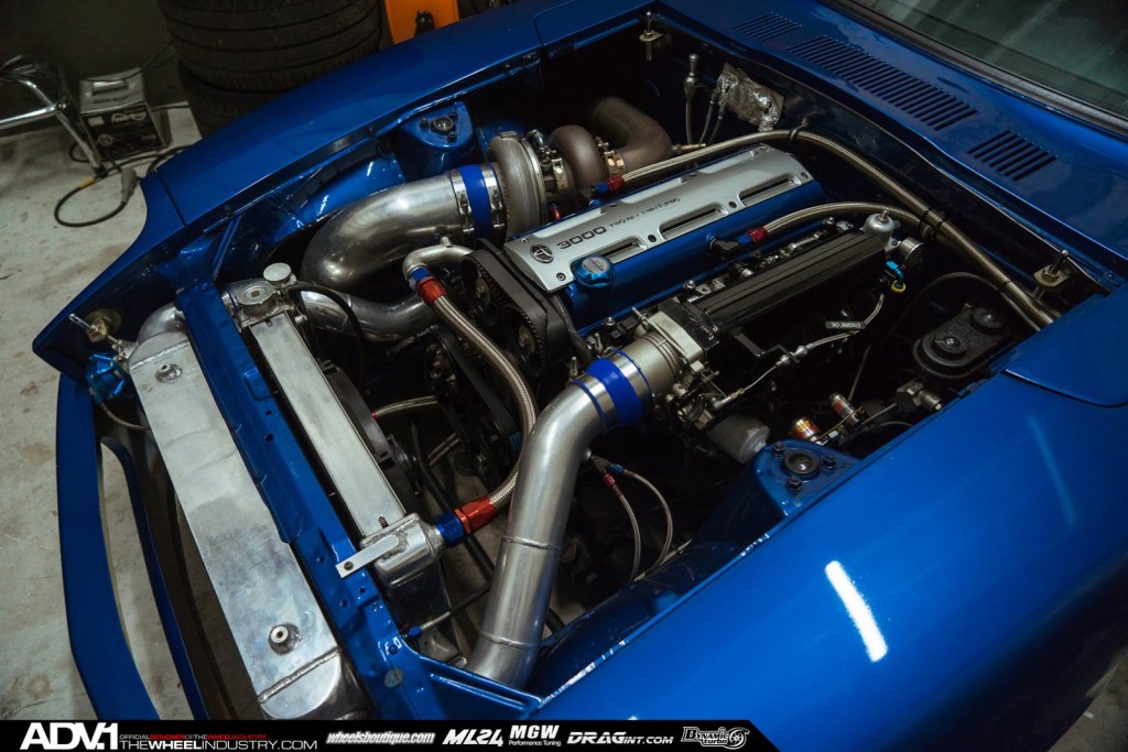 Ребята из ADV.1 Wheels серьезно поработали над технической частью Datsun 280Z. Стоковый мотор давно покинул подкапотное пространство и его место занял 2JZGTE от Toyota Supra, раскачегаренный до 1000 л.с.