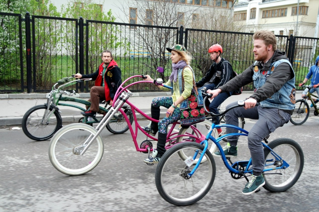 Май, мир, кастом! Пока вы трудились на дачах, помогая родителям, в эти выходные в Москве состоялась встреча РастаБайк Клуба - любителей кастомных велосипедов – это как байкеры, только добрые, милые, на позитиве и не воняют бензином. Несмотря на прохладную погоду и дождик растабайкеры собрались в Москве и устроили клубный проезд от ЦПКиО им. Горького и отправились на Кубок Конструкторов 2015.