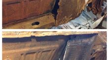 Вот в таком состоянии и поступил Мустанг к мастеру. Повсюду одна гниль и ржавчина. Судя по фотографиям умельцу потребовалось много времени и сил, чтобы отреставрировать американца.
