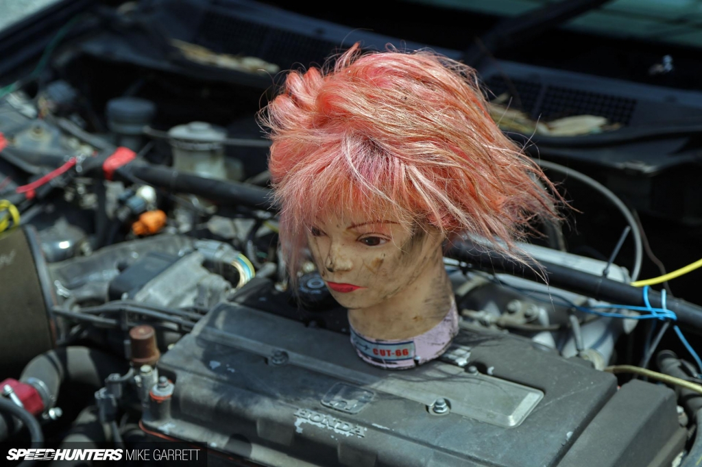 И хоть стиль пилотирования машины очень необычен, состояние самого же Civic довольно типичное. Никаких крутых наворотов. Под капотом - почти стандартный мотор B16A DOHC VTEC, но боком ехать эту машину заставляет вовсе не мощность мотора. На деле, мощность решает куда меньше, когда дрифтишь на переднеприводном автомобиле, ведь для дрифта не используются ведущие колёса.