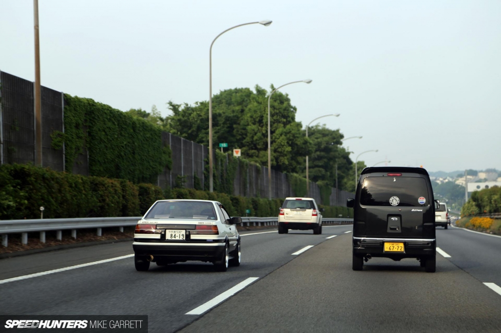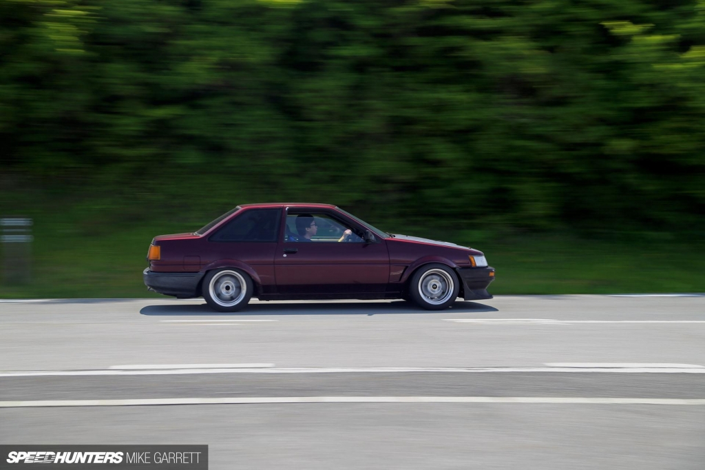 Вскоре после этого на глаза попался этот ухоженный AE86 Levin в кузове купе, который в умеренном темпе ехал по трассе. Хайвей был полон крутых машин в тот день.