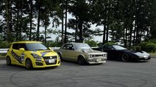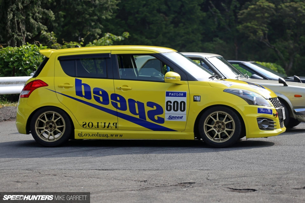 Одна из них - Suzuki Swift с каркасом безопасности, цепкими шинами и наверняка нужным развалом спереди. Выглядела она как типичная машина для трековых покатушек.