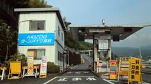 Мы решили немного отдохнуть после поездки из Токио. Купили по банке кофе из торгового автомата и сели неподалёку, наблюдая за тем, как машины проскальзывают через въезд.