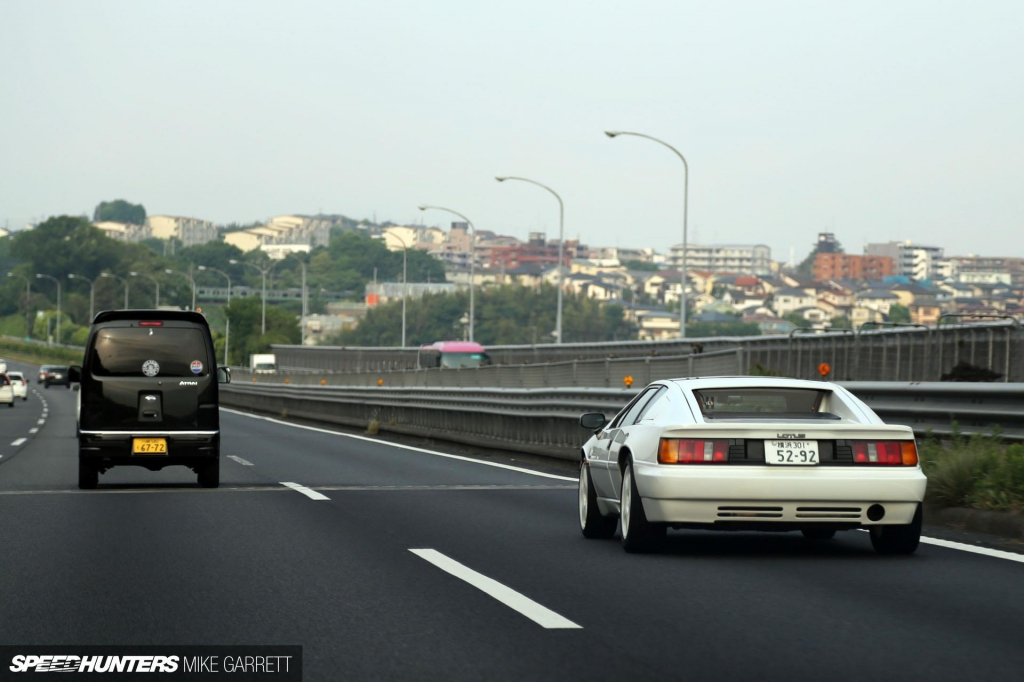 В свободном траффике мы из Токио выехали на Tomei Expressway, но менее чем через час на нашем пути стали появляться другие водители, едущие туда же, куда и мы. Вот, например, Lotus Esprit, который обошёл нас без особых проблем по обгонной полосе.