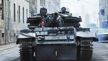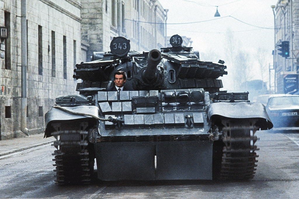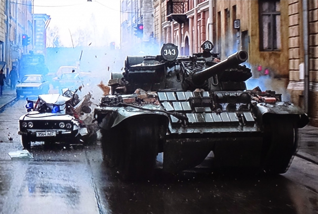 Разве возможно разрушить полгорода и сбить поезд с рельс без участия танка? Не думаю, что Aston Martin DB5 справился бы с этой задачей, а вот этот красавец не подкачал.