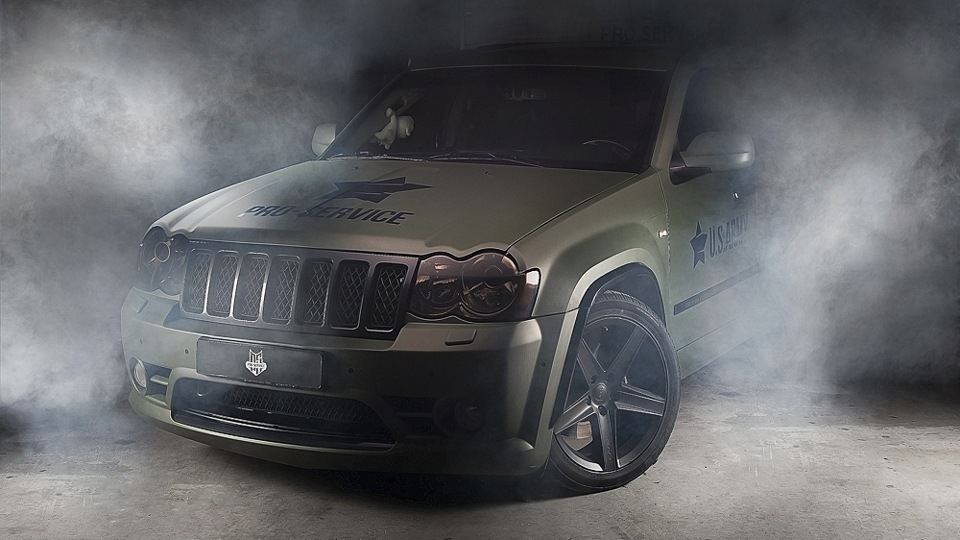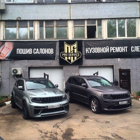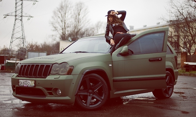 Еще один Jeep Grand Cherokee SRT8 из SRT клуба. После всех ремонтных работ, было решено что автомобилю нужно добавить не много комфортности. Руль был изменен, а так же потолок полностью перетянут в алькантару. После этих изменений нужно было предать автомобилю свою изюминку и нами было решено что автомобилю идеально подойдет темно — зеленая пленка цвета хакки и ко всему этому были добавлены наши надписи на капот. Получился весьма агрессивный автомобиль с своим собственным стилем.