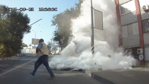 Просматривая подобные клипы, иностранцы понимают, насколько опасно жить в России. Сидишь ты на диване, смотришь телевизор, и внезапно в тебя влетает фура. Интересная деталь этой аварии заключается в том, что грузовик был до отказа набит мукой, которая рассыпалась на десятки метров вокруг места ДТП. Впрочем, русский народ из любой катастрофы выгоду извлечет. Разбилась фура с курицей? Месяц наслаждаемся куриным филе. Грузовик сбил корову? Месяц кушаем на обед бифштекс. Жаль, что рядом с местом этого происшествия не оказалось бассейна, а то можно было бы сделать годовой запас теста для пирожков.