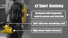 Новое устройство даже не требует баллонов с кислородом, ведь владелец сможет передвигаться под водой со скоростью до 10 км/ч без каких-либо телодвижений! Таким образом, вы сможете сохранить кислород для более длительного пребывания под водой. Гаджет представляет собой два пропеллера, которые создают реактивную силу в 49 кг и могут беспрерывно работать целый час. Более того, x2 Sport напечатан на 3D-принтере, таким образом все детали являются сверхлёгкими и прочными.