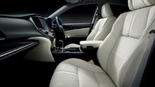 Гибридная модель отличилась новыми вставками из красного дерева на панели. Автомобиль доступен как с передним, так и с полным приводом.