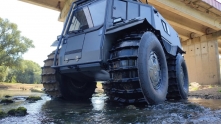 Особенность этого вездехода заключается в том, что он может не только поворачивать, подтормаживая колёса одного из бортов, но и функционировать как настоящая «переломка». Однако этот функционал сильно утяжеляет конструкцию.
