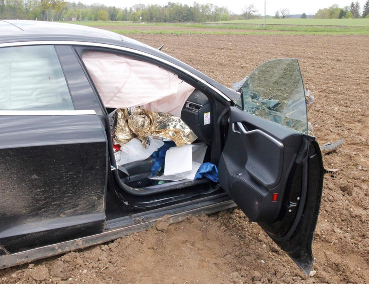 Tesla старательно заботится о безопасности своих моделей, и все аварии с их участием действительно подтверждают это. Судя по тому, как далеко находится дорога от места, где остановился автомобиль, нетрудно предположить, что подростки выжимали из машины всё, на что она способна. Не самая лучшая затея.