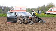 Судя по фотографиям, опубликованным немецким ресурсом Merkur, машина полностью разбита, однако салон практически не пострадал. Кроме того, на колёса она встала скорее всего благодаря тяжёлому днищу, которое могло бы стать причиной ужасных последствий, перевернись автомобиль на крышу.
