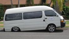 Микроавтобусы Toyota Hi-Ace, наверное, самый популярный транспорт во всех азиатских туристических странах. Что только не делают там с ними, поэтому появление версии с пневмоподвеской было лишь вопросом времени.